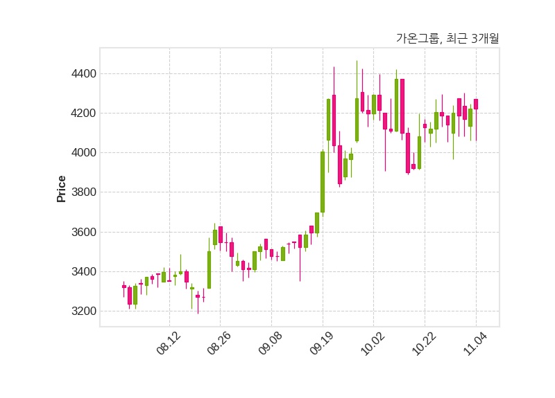 한편, 가온그룹은 장 마감 이후 해당 기업공시를 발표했으며 오늘 종가가 4,220원, 거래량은 82,934주로, 직전 거래일 대비 변동이없다.
