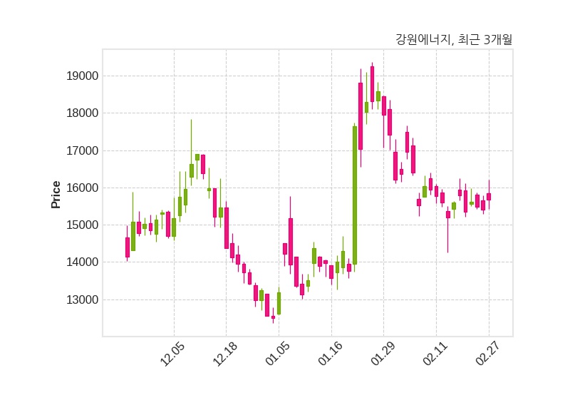 한편, 강원에너지는 장 마감 이후 해당 기업공시를 발표했으며 오늘 종가가 15,680원, 거래량은 208,104주로, 직전 거래일 대비 280원(+1.82%) 상승했다.