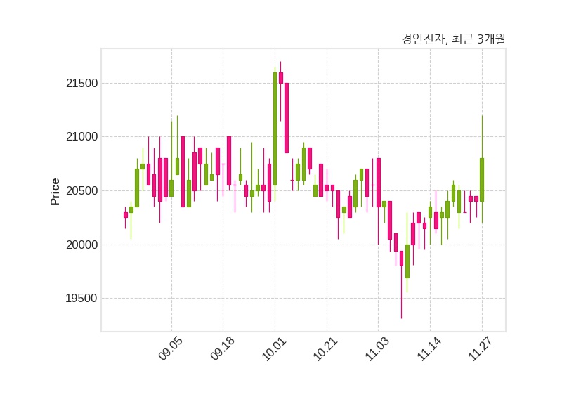 한편, 경인전자는 장 마감 이후 해당 기업공시를 발표했으며 오늘 종가가 20,800원, 거래량은 6,856주로, 직전 거래일 대비 400원(+1.96%) 상승했다.