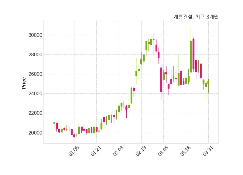 한편, 계룡건설산업의 14시 48분 현재주가는 25,300원으로 직전 거래일 대비 250원(+1.0%) 상승이며, 거래량은 48,897주이다.