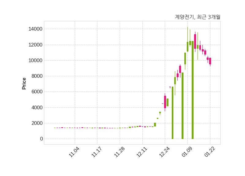 한편, 계양전기는 장 마감 이후 해당 기업공시를 발표했으며 오늘 종가가 9,520원, 거래량은 2,138,257주로, 직전 거래일 대비 580원(-5.74%) 하락했다.