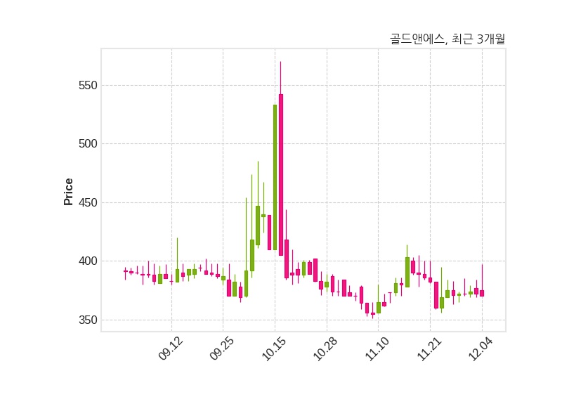 한편, 골드앤에스는 장 마감 이후 해당 기업공시를 발표했으며 오늘 종가가 370원, 거래량은 328,302주로, 직전 거래일 대비 2원(-0.54%) 하락했다.