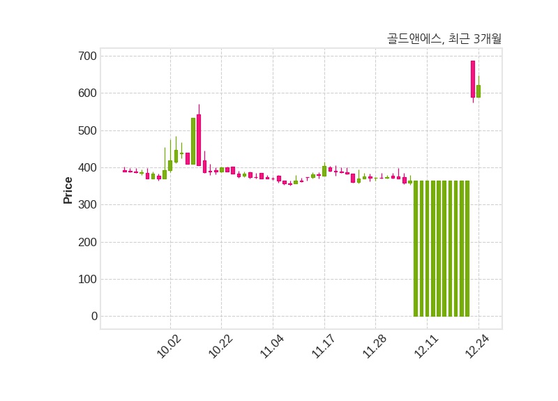 한편, 골드앤에스는 장 마감 이후 해당 기업공시를 발표했으며 오늘 종가가 620원, 거래량은 320,759주로, 직전 거래일 대비 30원(+5.08%) 상승했다.