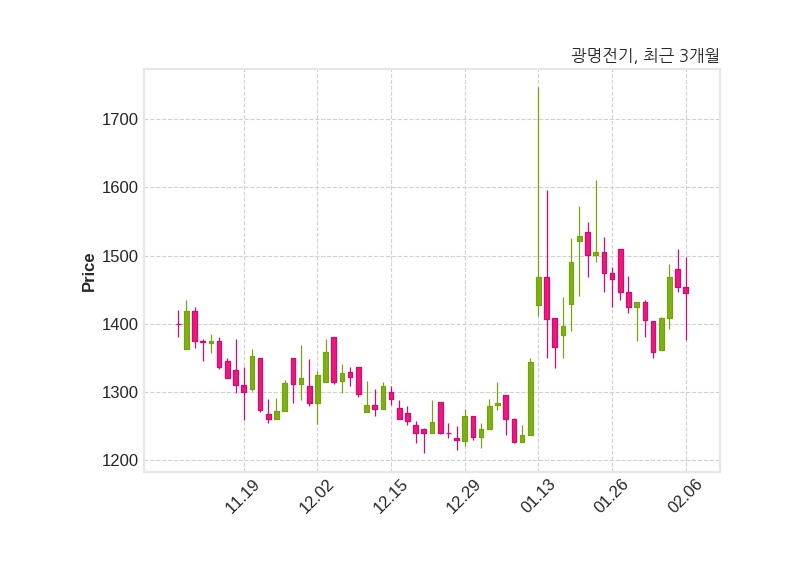 한편, 광명전기는 장 마감 이후 해당 기업공시를 발표했으며 오늘 종가가 1,445원, 거래량은 522,166주로, 직전 거래일 대비 9원(-0.62%) 하락했다.