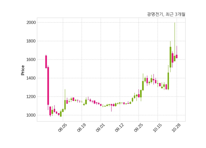 한편, 광명전기는 장 마감 이후 해당 기업공시를 발표했으며 오늘 종가가 1,617원, 거래량은 2,777,210주로, 직전 거래일 대비 21원(-1.28%) 하락했다.