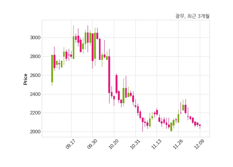광무는 특별관계자 골든밸류 제5호 신기술조합의 지분율이 0.0%에서 8.99%로 변동했다고 09일 공시했다. 한편, 광무는 장 마감 이후 해당 기업공시를 발표했으며 오늘 종가가 2,065원, 거래량은 218,329주로, 직전 거래일 대비 10원(-0.48%) 하락했다.