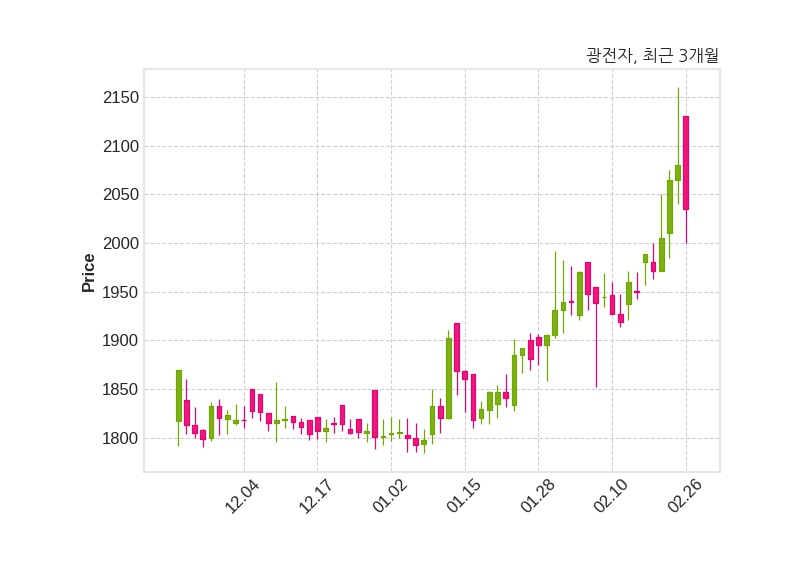 한편, 광전자는 장 마감 이후 해당 기업공시를 발표했으며 오늘 종가가 2,035원, 거래량은 320,977주로, 직전 거래일 대비 45원(-2.16%) 하락했다.