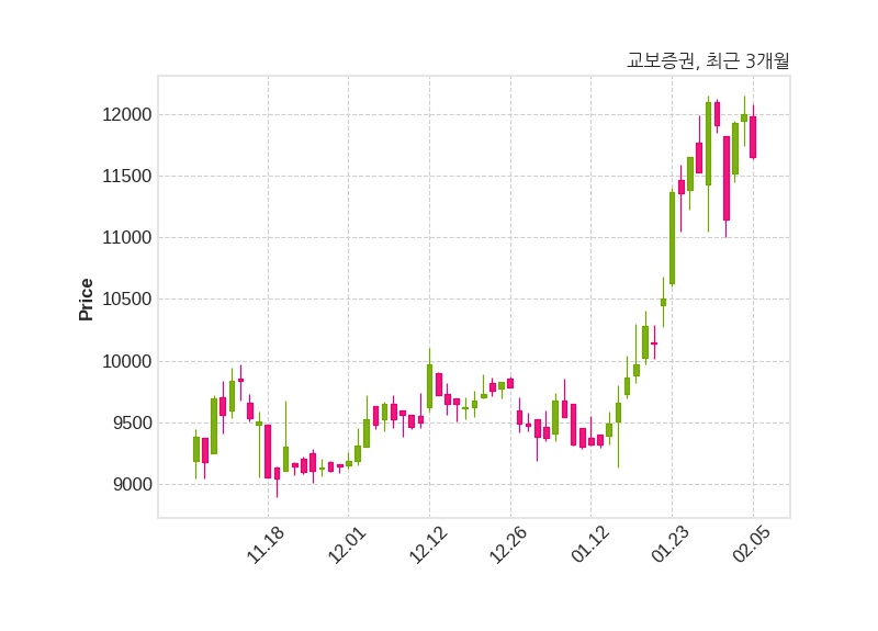 한편, 교보증권은 장 마감 이후 해당 기업공시를 발표했으며 오늘 종가가 11,650원, 거래량은 98,238주로, 직전 거래일 대비 350원(-2.92%) 하락했다.