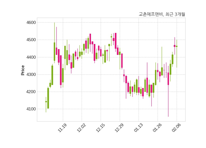 한편, 교촌에프앤비는 장 마감 이후 해당 기업공시를 발표했으며 오늘 종가가 4,465원, 거래량은 121,365주로, 직전 거래일 대비 5원(+0.11%) 상승했다.