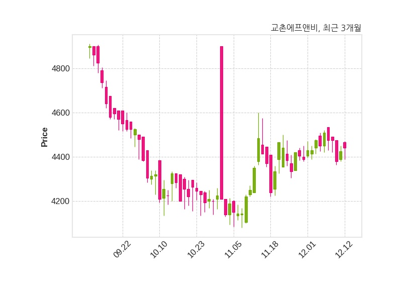 한편, 교촌에프앤비는 장 마감 이후 해당 기업공시를 발표했으며 오늘 종가가 4,440원, 거래량은 32,517주로, 직전 거래일 대비 15원(+0.34%) 상승했다.