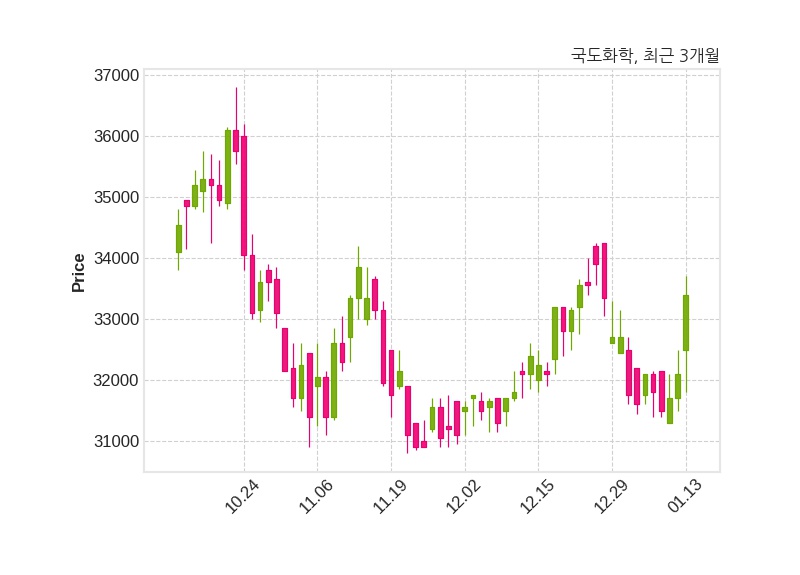 한편, 국도화학의 15시 16분 현재주가는 33,400원으로 직전 거래일 대비 1,300원(+4.05%) 상승이며, 거래량은 12,355주이다.