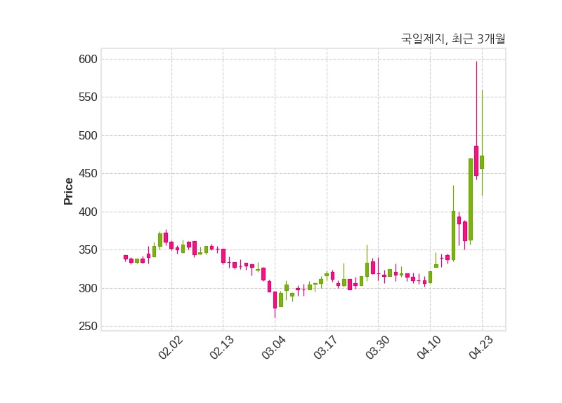 한편, 국일제지는 장 마감 이후 해당 기업공시를 발표했으며 오늘 종가가 473원, 거래량은 87,286,748주로, 직전 거래일 대비 25원(+5.58%) 상승했다.