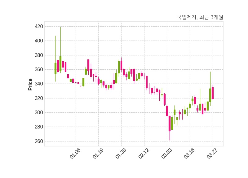 국일제지는 변경전 대표이사에서 박흥준으로 대표이사를 변경했다고 27일 공시했다. 변경 사유는 기존 대표이사 사임에 따른 신규선임이다. 한편, 국일제지는 장 마감 이후 해당 기업공시를 발표했으며 오늘 종가가 319원, 거래량은 2,243,510주로, 직전 거래일 대비 14원(-4.2%) 하락했다.공시 전문으로 이동