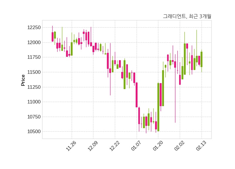 한편, 그래디언트는 장 마감 이후 해당 기업공시를 발표했으며 오늘 종가가 11,840원, 거래량은 27,168주로, 직전 거래일 대비 210원(+1.81%) 상승했다.