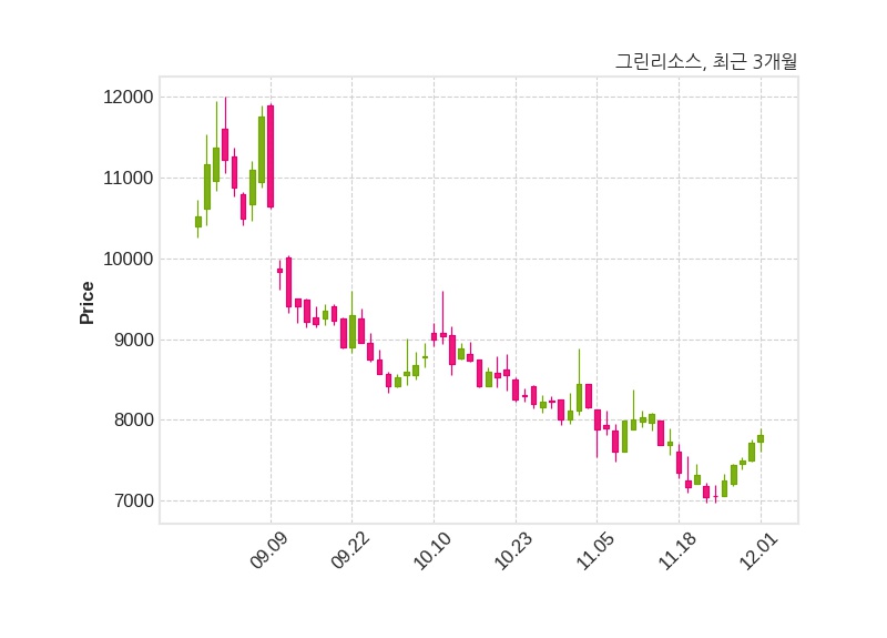 한편, 그린리소스의 14시 54분 현재주가는 7,810원으로 직전 거래일 대비 100원(+1.3%) 상승이며, 거래량은 100,695주이다.