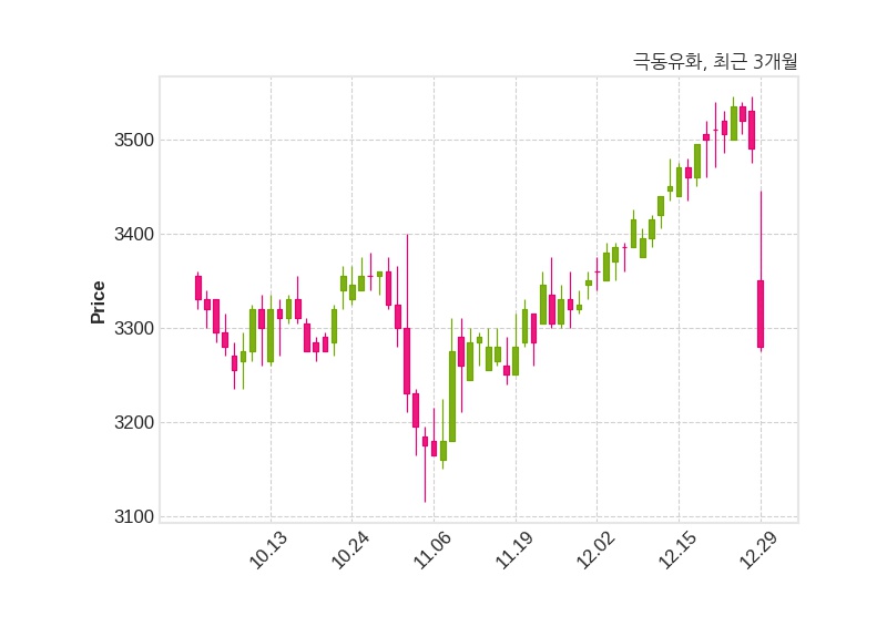 한편, 극동유화의 14시 05분 현재주가는 3,280원으로 직전 거래일 대비 210원(-6.02%) 하락이며, 거래량은 235,926주이다.