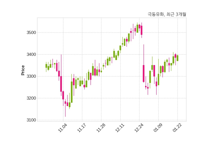 극동유화는 특별관계자 한국타이어앤테크놀로지의 지분율이 11.69%에서 9.98%로 변동했다고 22일 공시했다. 한편, 극동유화는 장 마감 이후 해당 기업공시를 발표했으며 오늘 종가가 3,395원, 거래량은 103,751주로, 직전 거래일 대비 10원(+0.3%) 상승했다.