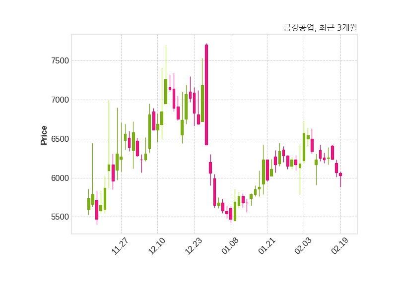한편, 금강공업은 장 마감 이후 해당 기업공시를 발표했으며 오늘 종가가 6,030원, 거래량은 154,914주로, 직전 거래일 대비 40원(-0.66%) 하락했다.
