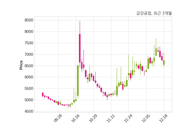 한편, 금강공업은 장 마감 이후 해당 기업공시를 발표했으며 오늘 종가가 6,740원, 거래량은 768,795주로, 직전 거래일 대비 10원(-0.15%) 하락했다.