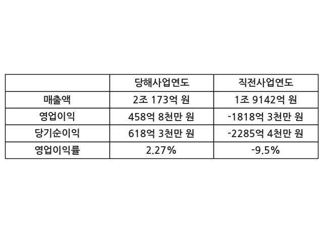 이번사업연도의 매출액은 직전사업연도 대비 5.39% 증가한 2조 173억 원, 영업이익은 458억 8천만 원, 당기순이익은 618억 3천만 원이라고 공시했다.