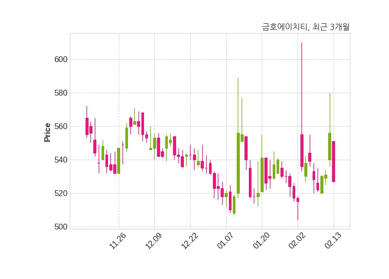 한편, 금호에이치티는 장 마감 이후 해당 기업공시를 발표했으며 오늘 종가가 527원, 거래량은 1,410,916주로, 직전 거래일 대비 29원(-5.22%) 하락했다.