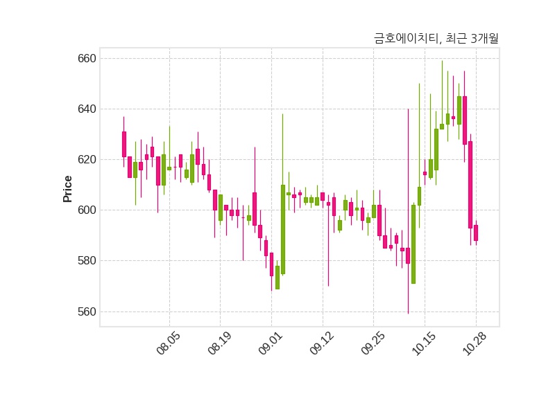 한편, 금호에이치티는 장 마감 이후 해당 기업공시를 발표했으며 오늘 종가가 588원, 거래량은 537,966주로, 직전 거래일 대비 5원(-0.84%) 하락했다.