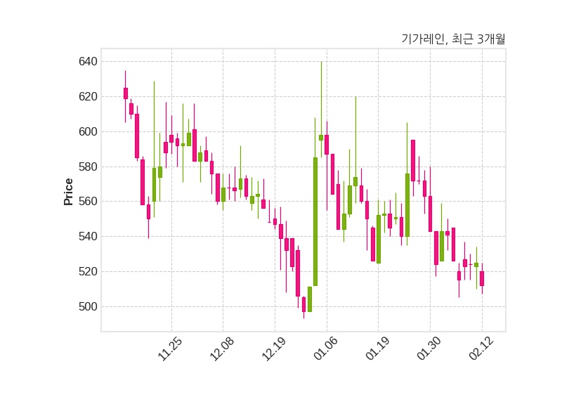 한편, 기가레인은 장 마감 이후 해당 기업공시를 발표했으며 오늘 종가가 512원, 거래량은 301,720주로, 직전 거래일 대비 13원(-2.48%) 하락했다.