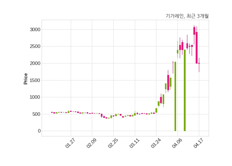 한편, 기가레인의 11시 13분 현재주가는 2,000원으로 직전 거래일 대비 변동없으며, 거래량은 16,211,898주이다.