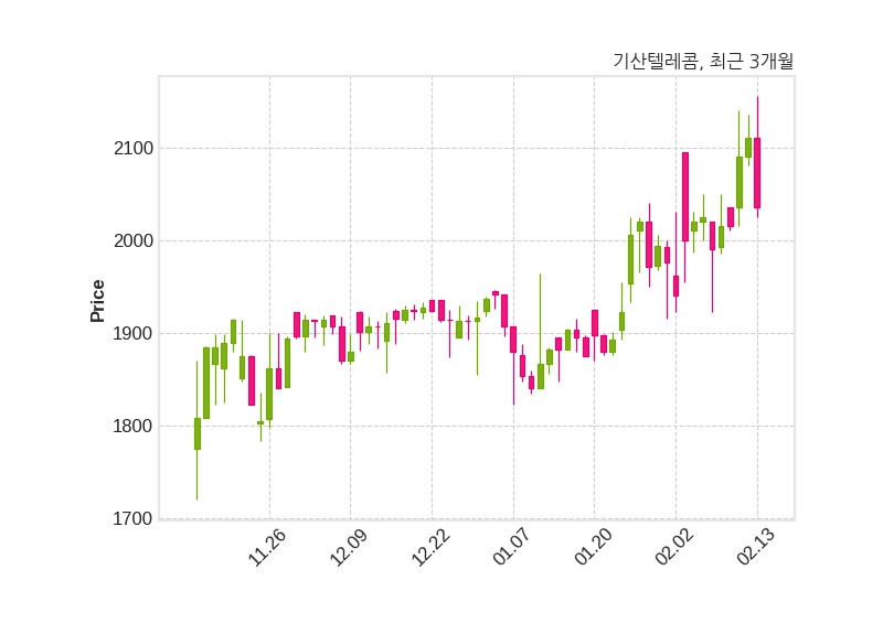 한편, 기산텔레콤의 11시 11분 현재주가는 2,035원으로 직전 거래일 대비 75원(-3.55%) 하락이며, 거래량은 34,962주이다.