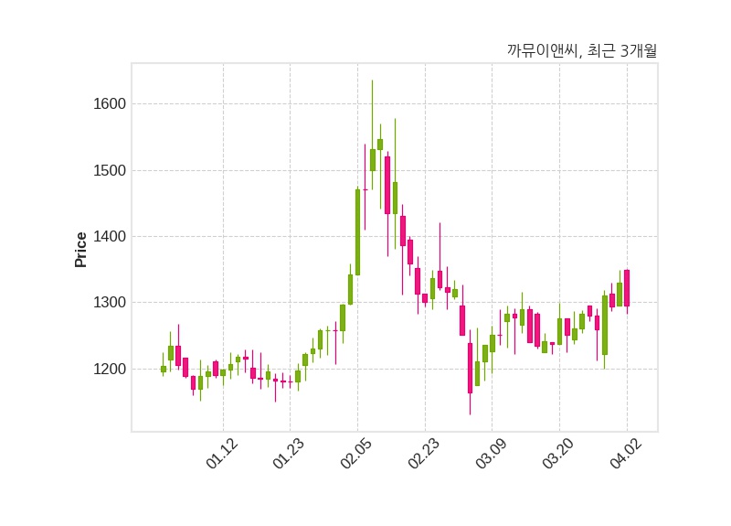 한편, 까뮤이앤씨의 15시 06분 현재주가는 1,295원으로 직전 거래일 대비 35원(-2.63%) 하락이며, 거래량은 199,789주이다.
