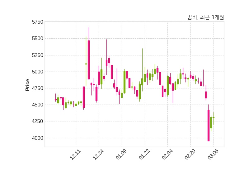 꿈비는 특별관계자 박영건의 지분율이 38.67%에서 39.38%로 변동했다고 06일 공시했다. 한편, 꿈비는 장 마감 이후 해당 기업공시를 발표했으며 오늘 종가가 4,315원, 거래량은 47,100주로, 직전 거래일 대비 5원(+0.12%) 상승했다.