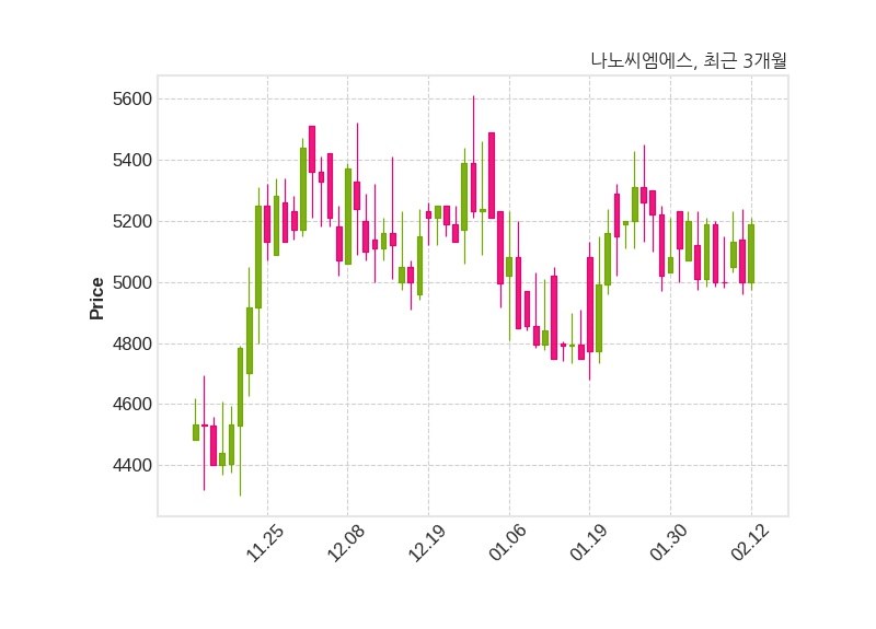 한편, 나노씨엠에스는 장 마감 이후 해당 기업공시를 발표했으며 오늘 종가가 5,190원, 거래량은 46,402주로, 직전 거래일 대비 190원(+3.8%) 상승했다.