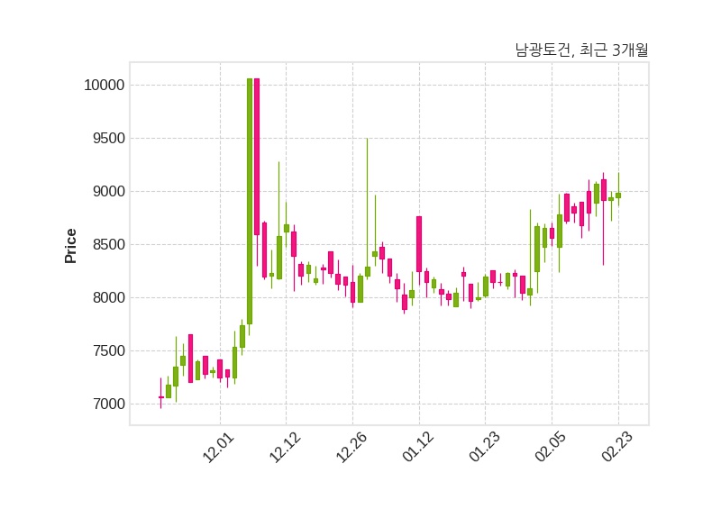 한편, 남광토건은 장 마감 이후 해당 기업공시를 발표했으며 오늘 종가가 8,990원, 거래량은 45,703주로, 직전 거래일 대비 50원(+0.56%) 상승했다.