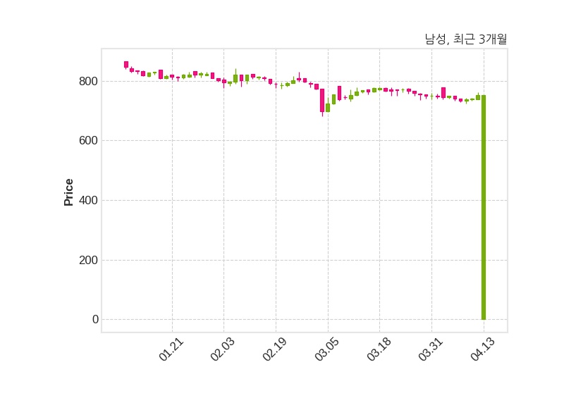 남성은 특별관계자 윤성호의 지분율이 37.72%에서 0.0%로 변동했다고 13일 공시했다. 한편, 남성의 13시 42분 현재주가는 753원으로 직전 거래일 대비 변동없으며, 거래량은 0주이다.