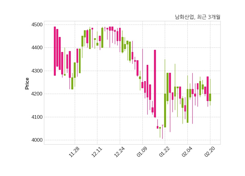 한편, 남화산업은 장 마감 이후 해당 기업공시를 발표했으며 오늘 종가가 4,200원, 거래량은 8,776주로, 직전 거래일 대비 30원(+0.72%) 상승했다.