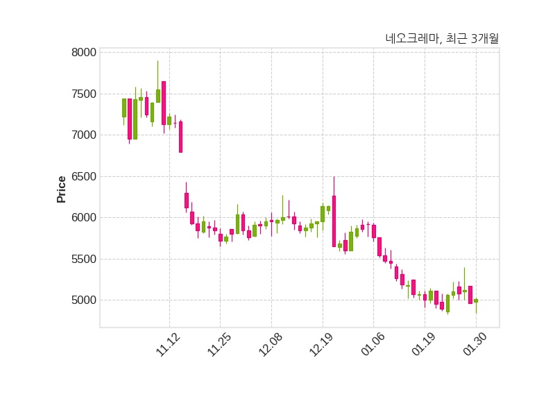 네오크레마는 특별관계자 대호에이엘의 지분율이 3.64%에서 6.43%로 변동했다고 30일 공시했다. 한편, 네오크레마는 장 마감 이후 해당 기업공시를 발표했으며 오늘 종가가 5,010원, 거래량은 139,268주로, 직전 거래일 대비 50원(+1.01%) 상승했다.