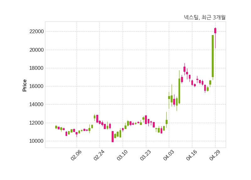 한편, 넥스틸은 장 마감 이후 해당 기업공시를 발표했으며 오늘 종가가 21,850원, 거래량은 3,065,709주로, 직전 거래일 대비 250원(+1.16%) 상승했다.