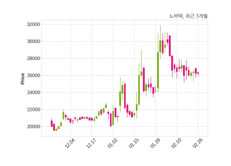 한편, 노바텍의 11시 56분 현재주가는 26,250원으로 직전 거래일 대비 변동없으며, 거래량은 51,967주이다.