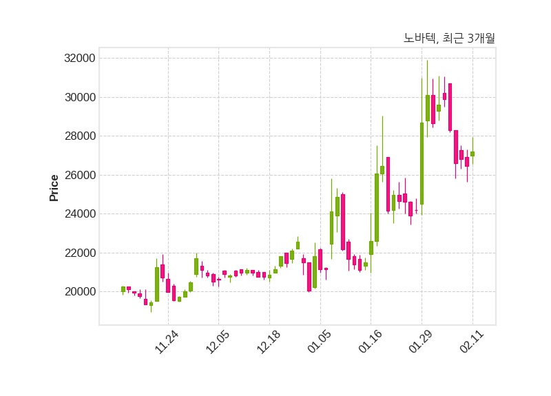 노바텍은 특별관계자 오춘택의 지분율이 54.27%에서 54.28%로 변동했다고 11일 공시했다. 한편, 노바텍의 10시 00분 현재주가는 27,200원으로 직전 거래일 대비 750원(+2.84%) 상승이며, 거래량은 62,158주이다.
