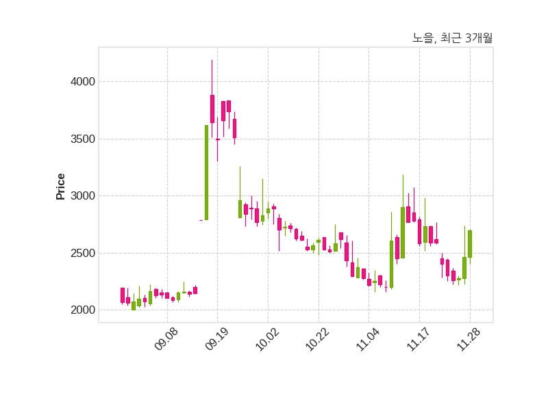 한편, 노을의 12시 47분 현재주가는 2,695원으로 직전 거래일 대비 230원(+9.33%) 상승이며, 거래량은 1,522,991주이다.