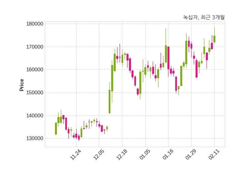 한편, 녹십자는 장 마감 이후 해당 기업공시를 발표했으며 오늘 종가가 174,800원, 거래량은 106,099주로, 직전 거래일 대비 5,700원(+3.37%) 상승했다.