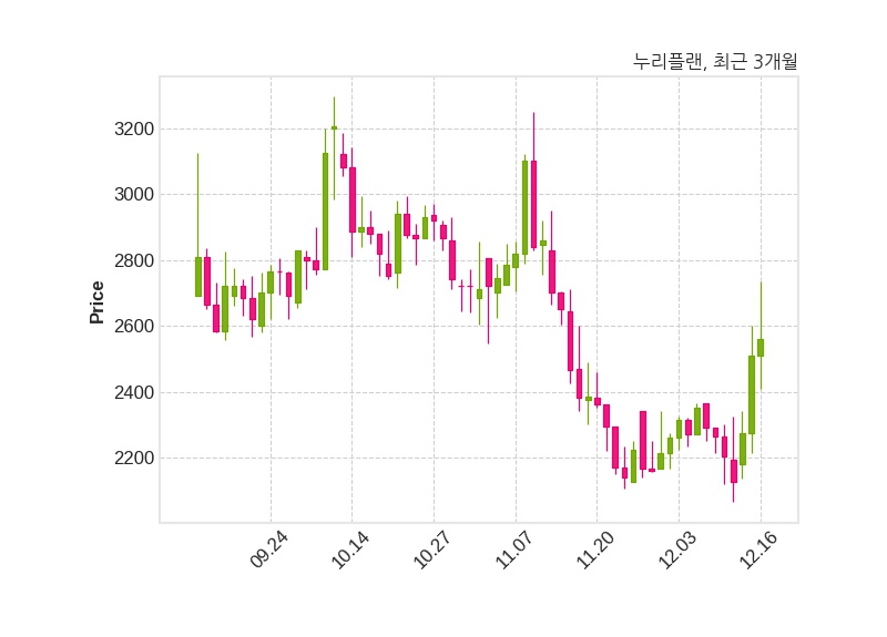 누리플랜은 특별관계자 수성자산운용의 지분율이 8.47%에서 11.68%로 변동했다고 16일 공시했다. 한편, 누리플랜은 장 마감 이후 해당 기업공시를 발표했으며 오늘 종가가 2,560원, 거래량은 391,805주로, 직전 거래일 대비 50원(+1.99%) 상승했다.