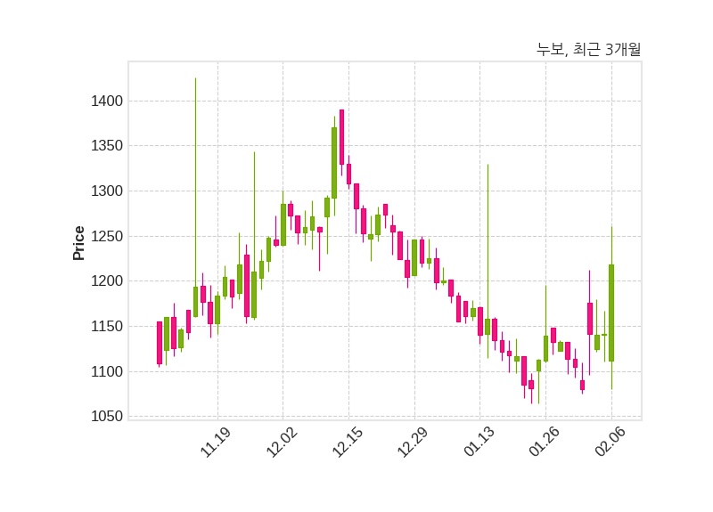 한편, 누보의 14시 06분 현재주가는 1,218원으로 직전 거래일 대비 77원(+6.75%) 상승이며, 거래량은 2,910,598주이다.