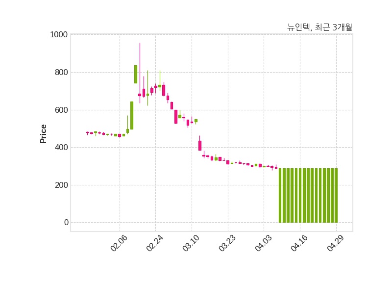 한국거래소는 29일 [코스닥] 상장기업인 뉴인텍에 대해 보통주에 대한 주권매매거래 정지를 해제한다고 공시했다.해제일시는 5월 6일이며, 해제 사유는 감자 주권 변경상장이다.한편, 뉴인텍은 거래정지 상태이다.공시 전문으로 이동