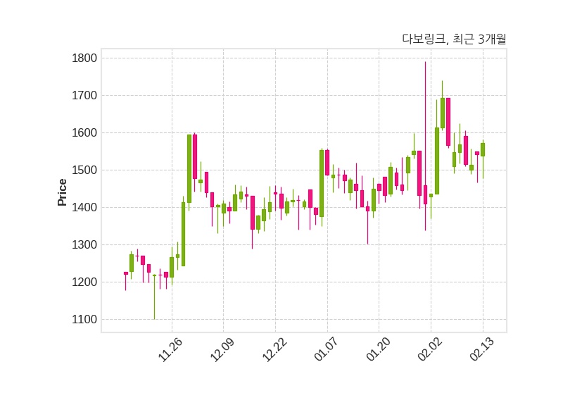 한편, 다보링크는 장 마감 이후 해당 기업공시를 발표했으며 오늘 종가가 1,571원, 거래량은 532,769주로, 직전 거래일 대비 29원(+1.88%) 상승했다.