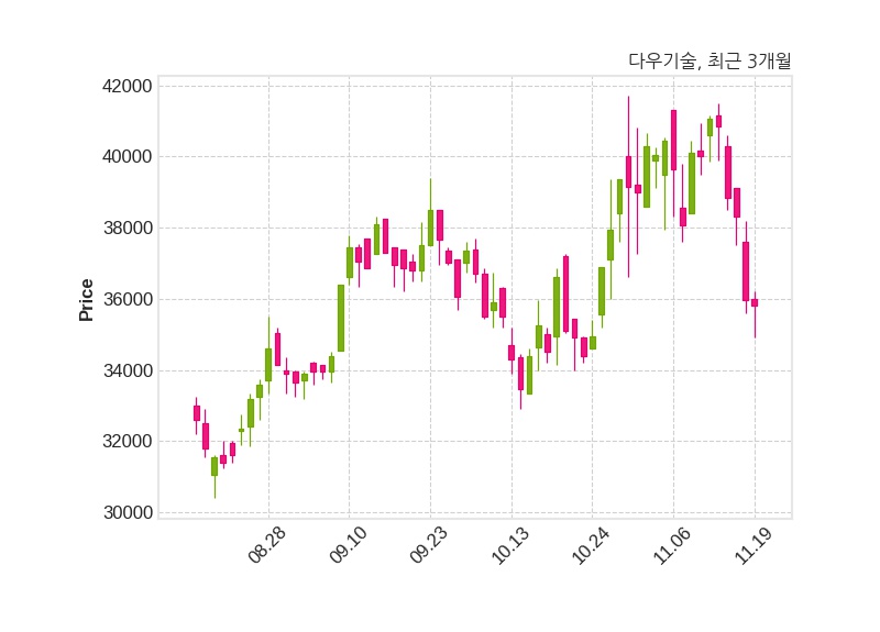 한편, 다우기술은 장 마감 이후 해당 기업공시를 발표했으며 오늘 종가가 35,800원, 거래량은 56,402주로, 직전 거래일 대비 150원(-0.42%) 하락했다.