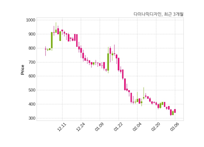 다이나믹디자인은 특별관계자 로아앤코의 지분율이 0.81%에서 0.28%로 변동했다고 06일 공시했다. 한편, 다이나믹디자인의 10시 51분 현재주가는 340원으로 직전 거래일 대비 10원(-2.86%) 하락이며, 거래량은 70,705주이다.