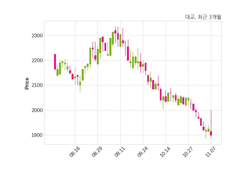 한편, 대교는 장 마감 이후 해당 기업공시를 발표했으며 오늘 종가가 1,900원, 거래량은 47,365주로, 직전 거래일 대비 25원(-1.3%) 하락했다.