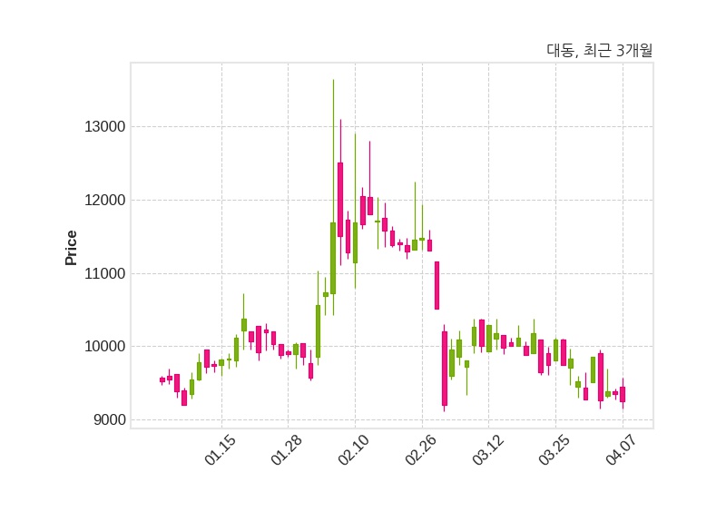 한편, 대동은 장 마감 이후 해당 기업공시를 발표했으며 오늘 종가가 9,250원, 거래량은 229,605주로, 직전 거래일 대비 100원(-1.07%) 하락했다.