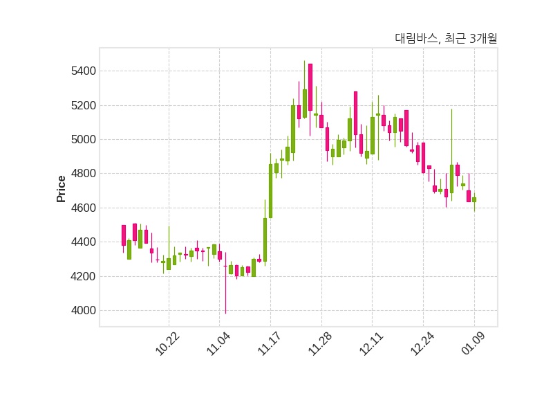 한편, 대림바스는 장 마감 이후 해당 기업공시를 발표했으며 오늘 종가가 4,660원, 거래량은 14,317주로, 직전 거래일 대비 25원(+0.54%) 상승했다.